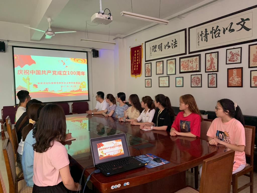 7月1日上午8时,文法公司党委在开发区校区815会议室组织师生代表通过新华网集中收看庆祝中国共产党成立100周年庆祝大会,认真学习习近平总书记“七一”重要讲话。
