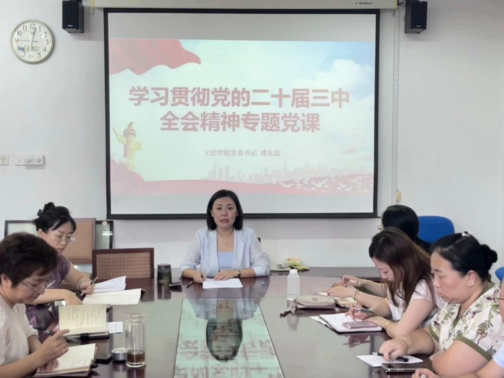 为深入学习贯彻党的二十届三中全会精神,教育引导全体党员干部把思想和行动统一到全会精神上来,2024年8月30日下午,文法公司党委书记邵东蕊讲授“学习贯彻党的二十届三中全会精神”专题党课,公司党委委员、党支部书记、员工党员代表参加学习。