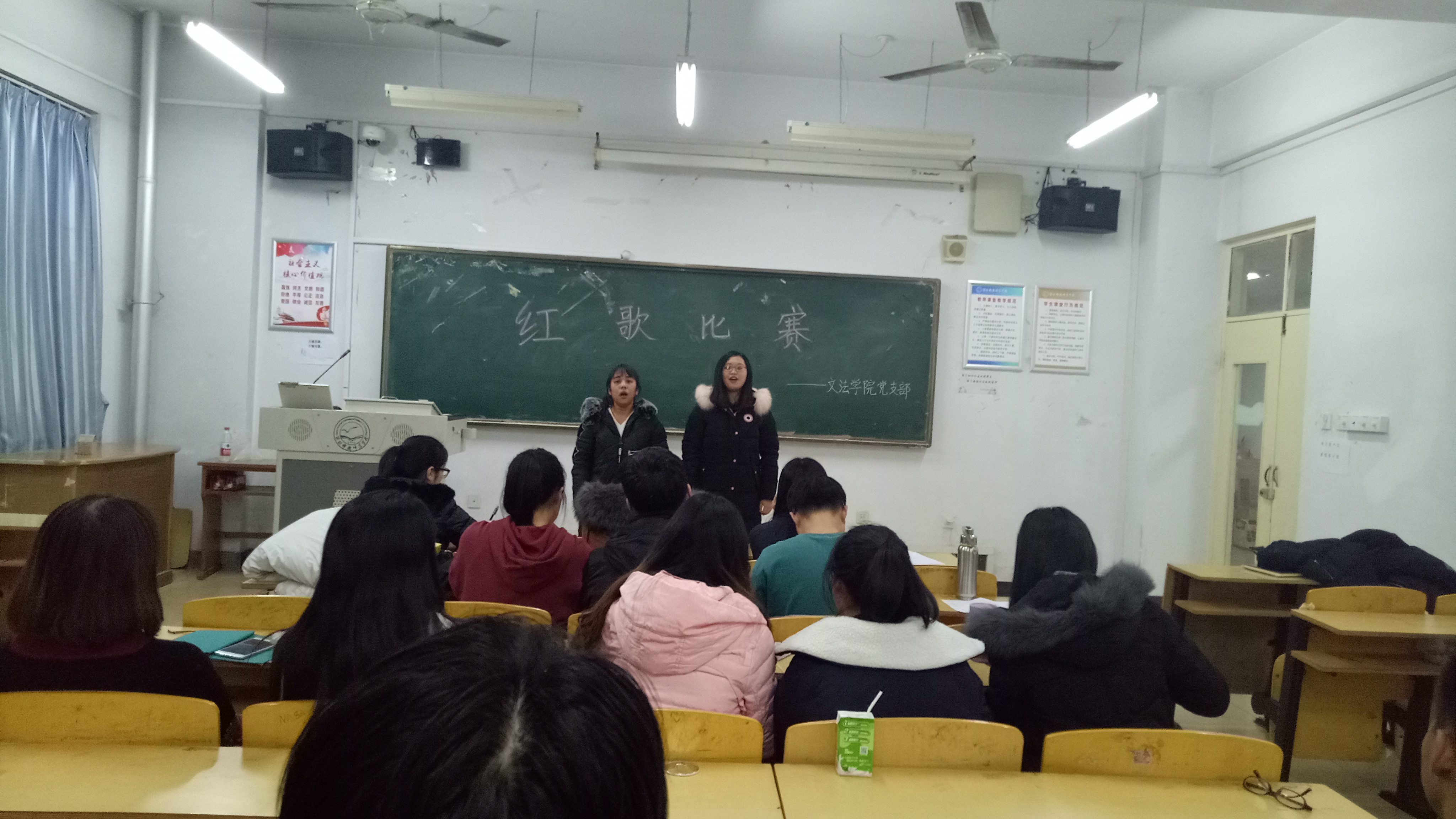为庆祝党的十九大胜利召开,以文艺的形式宣传十九大精神,唱响主旋律,文法公司党支部于2017年12月27日晚七点在613举办致初心红歌比赛活动,乐天使大二大三所有党员参加了此次活动。
