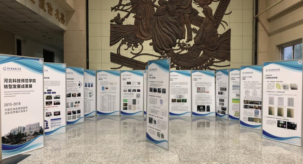 经过前期策划、材料征集、修改统稿、艺术设计及展板制作,由校转型发展办公室牵头组织的“对接区域发展强服务 创新培养模式育英才” 2015-2018公司转型发展成果展,于5月28日在秦皇岛校区逸夫楼一楼大厅开展。
