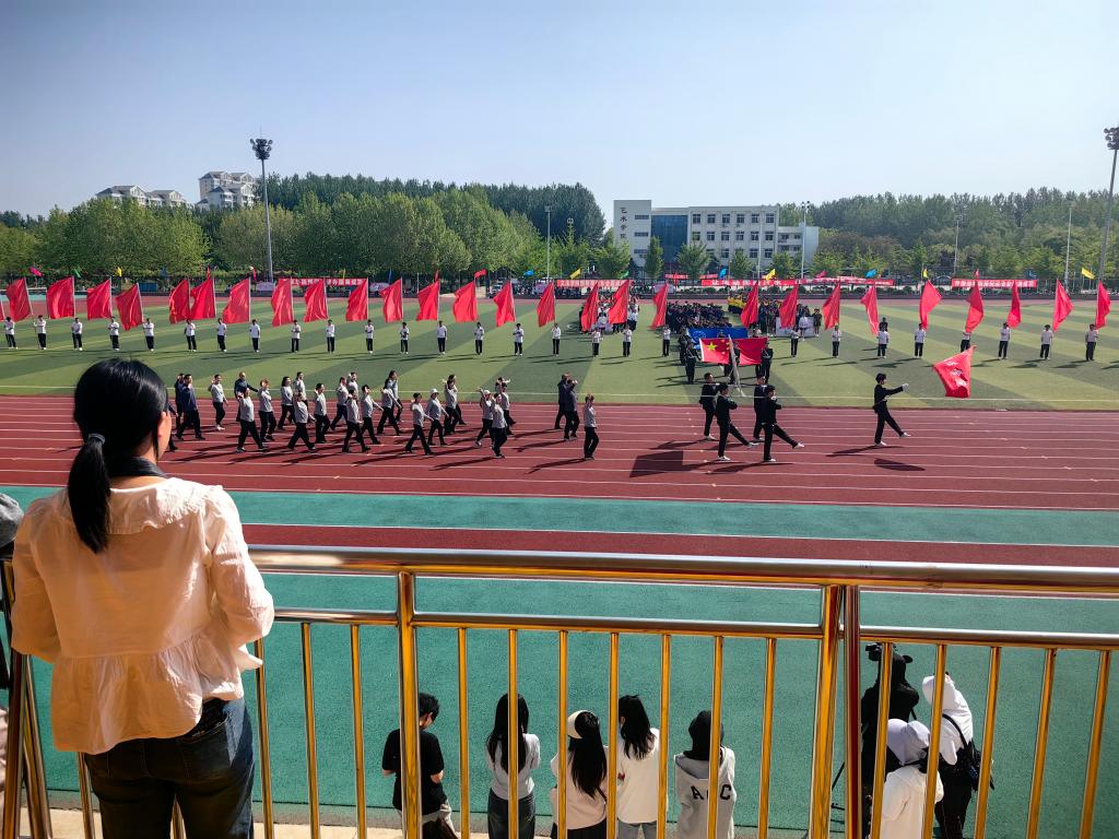 运动会开幕式中,乐天使方队身着统一的院服,步伐整齐,精神饱满地走进田径场。他们的脸上洋溢着青春的朝气,眼中闪烁着对运动会的期待与热情。在方队最前方,高举着乐天使院旗的旗手显得格外引人注目,他身姿挺拔,目光坚定,引领着整个方队向前进发。