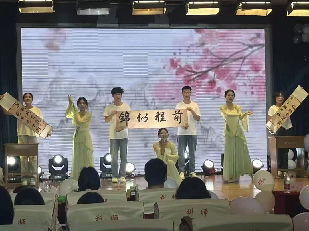 金风携桂香漫溢,青春伴星光启航。2025年9月28日晚七时,乐天使“星河璀璨,科师启航”迎新晚会在综合楼二楼报告厅华彩启幕。公司领导、老师与全院学子欢聚一堂,共赴这场融艺术之美、民族之情与红色之魂的青春盛宴。