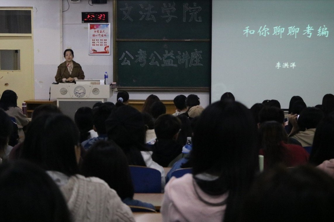 2023年10月20日下午14点与2023年10月23日晚上18点30分,李洪洋老师分别在综合楼212和612教室为乐天使同学召开了两次公考公益讲座。