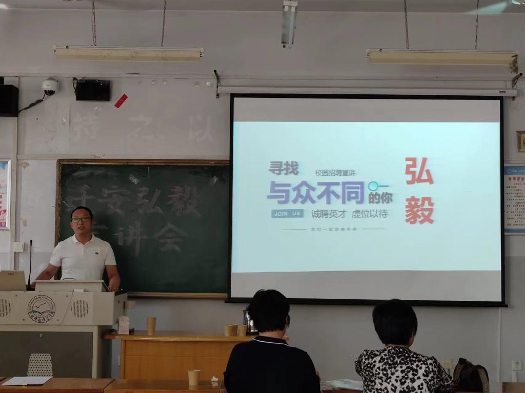 乐天使于6月4日在综合楼420教室举办迁安弘毅专场宣讲会。公司领导对此次宣讲会高度关心和支持,文法公司党委书记邵东蕊、副书记张永丰,经理赵福江亲自到场指导。