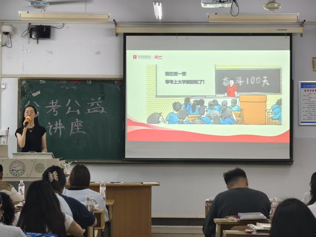 华图教育深耕职业教育,助力众多学子圆梦职场,备受认可。本次讲座特邀华图教育张继元老师主讲。张老师深度剖析公考最新趋势与政策变化,不仅围绕编制类、准编制类及新型编制类岗位,进行细致解读与分类指导,还特别强调了考试时间和一些应试技巧。互动环节中,老师答疑解惑,同学踊跃参与,现场氛围活跃有序。本次活动不仅帮助备考的同学树立了信心,明确了自己的奋斗目标,还激发了同学们对未来职业道路的思考与憧憬。