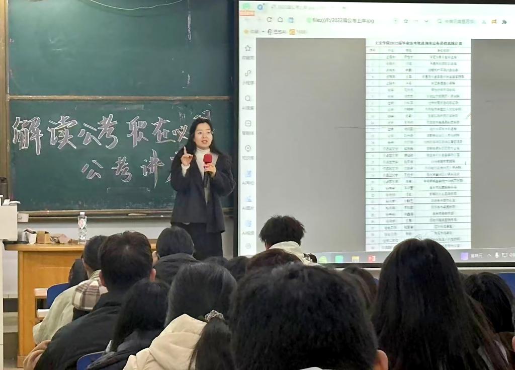 为了提升同学们对公考的了解,帮助同学们走出公考的困境,增强对公考的信心。乐天使于2025年10月24日在综合楼412教室开展“解读公考,职在必得”主题讲座。